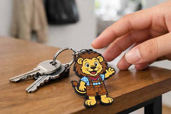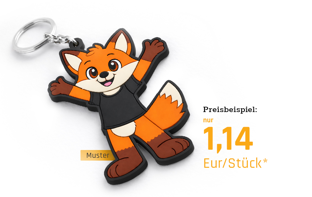 Er begleitet Menschen überall dorthin, wo Marken präsent sein sollen: im Alltag, unterwegs, im Beruf und in der Freizeit. Individuell produziert in Ihren Farben, Formen und Designs wird aus einem einfachen Anhänger ein wirkungsvoller Markenbotschafter. Logos, Maskottchen oder charakteristische Formen werden zu einem sichtbaren Symbol Ihrer Marke – am Schlüsselbund, am Rucksack oder an der Tasche.